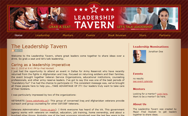 This website offers a lot of functionality in the form of a blog, the ability to nominate and display leaders, show events, accept and display book reviews, purchase products, and allow postings by people looking for mentors.