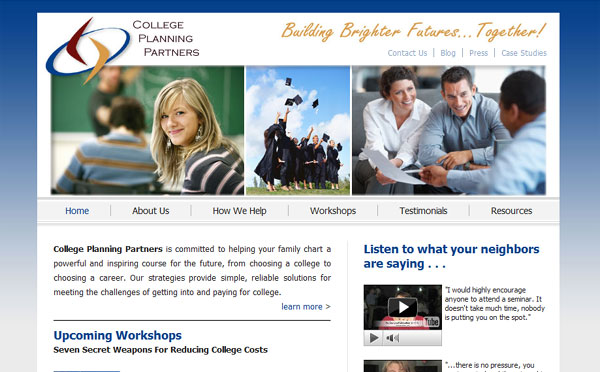 This fresh design offers clients the ability to browse and register for workshops, as well as read testimonials, case studies and learn more about the business in general.