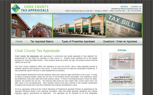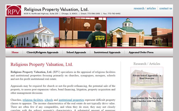 The Peterson Appraisal Group liked the first website we designed and built for them (www.religiouspropertyvaluation.com) that they hired us to do another. While we maintained a similar look and feel to the first, it still is able to stand alone by itself. We also were able to build a dynamic wall of articles utilizing the built-in features of the Small Biz Platform.