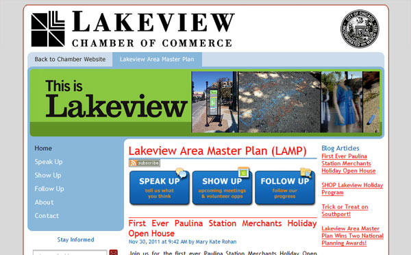 The Lakeview Chamber of Commerce needed a site for collecting and displaying information related to the Lakeview Area Master Plan (LAMP). The goal was to seamlessly match the design of the chamber site. And although it was supposed to only be temporary, they are so happy with it that they continue to use it to this day.