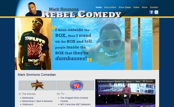 Comedian Mark Simmons wanted a site where he could showcase his portfolio, videos, and upcoming shows, as well as sell merchandise.