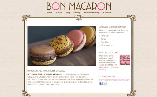 This local handmade macaron chef hired us to design a French-themed site for her to showcase her macarons.