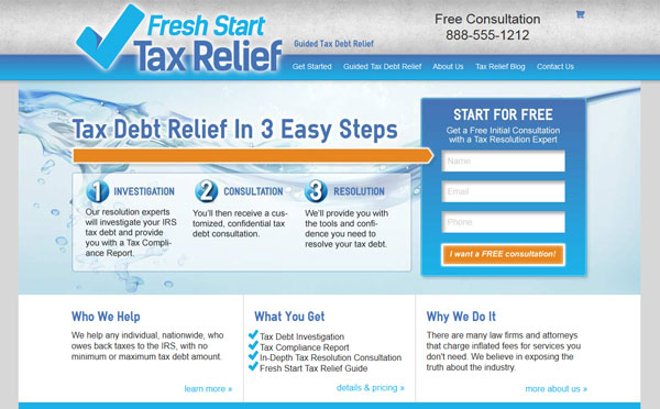 Fresh Start Tax Relief is a consumer-focused website dedicated to helping people get out of tax debt. We were hired to showcase what they do, and to display a vast amount of information.