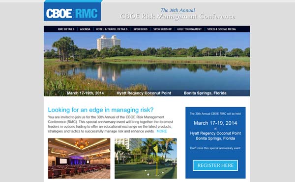 CBOE needed a website for their annual risk management conference. We designed and built a site consistent with the CBOE brand, giving access to registration, conference info, and past conference archives.