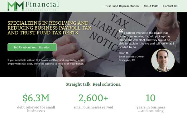 M&M Financial Consulting recognizes the value in targeting specific keywords. So they hired us to design a dedicated website for one specific service they provide.