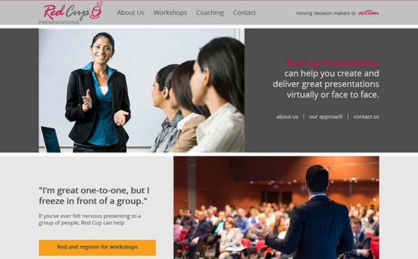 Red Cup Presentations offers workshops and coaching services. Although we designed the original site, it was time to refresh it again. So we gave the site a responsive custom redesign.